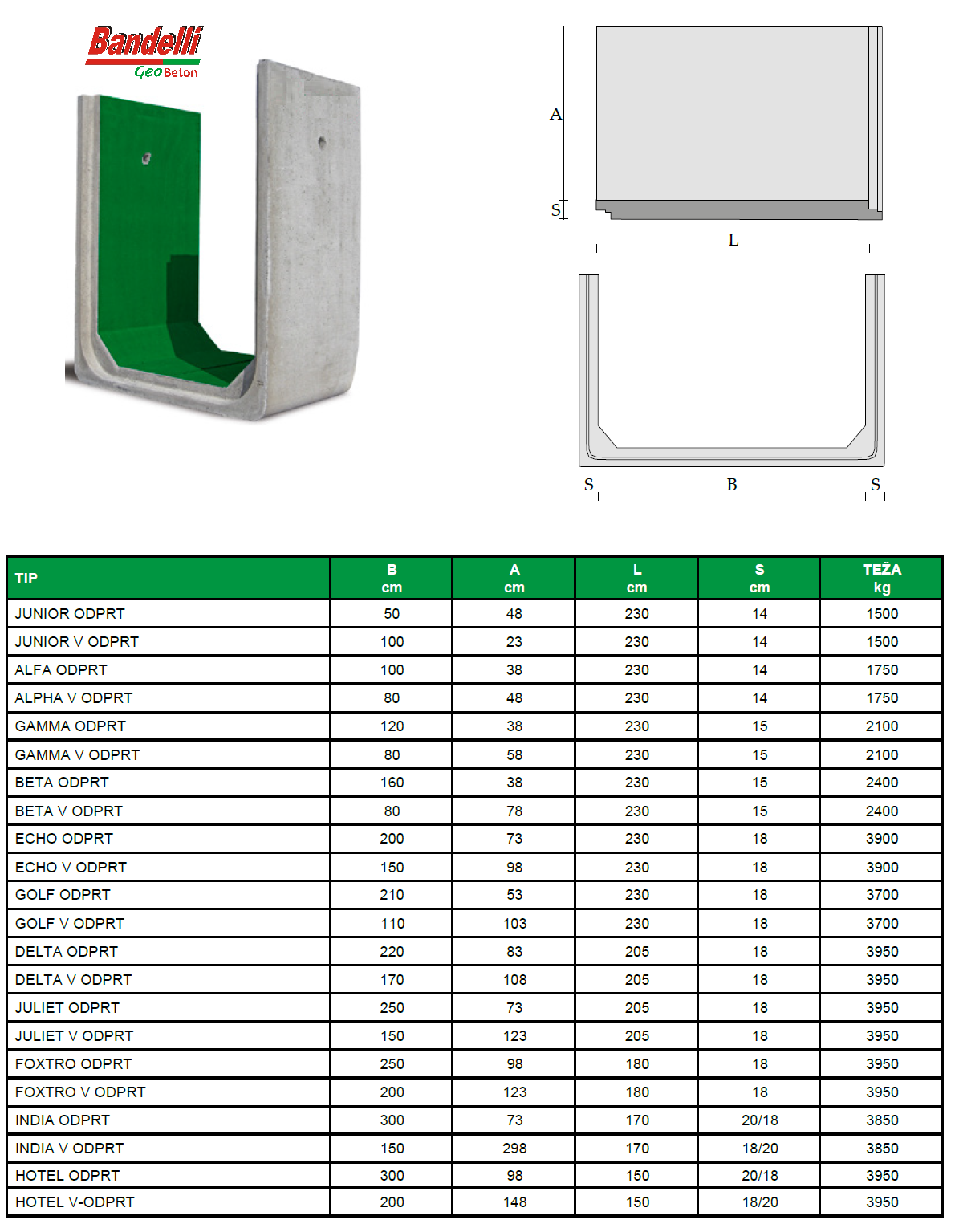 Kanali, izdelani z odprtimi modularnimi škatlastimi elementi, se uporabljajo za pretok voda in za transport različnih materialov.