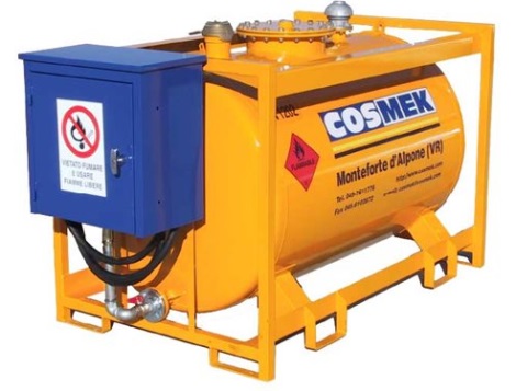 Cisterna vključuje omarico (prašno barvana) s ključavnico. V omarici je montirana električna črpalka 12V ali 24V (220V), 40L/min.