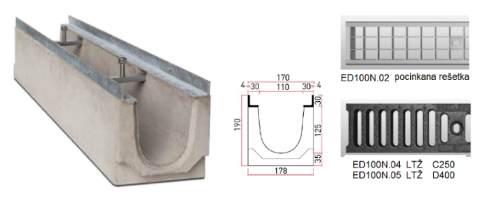 Betonska kanaleta z jeklenim pocinkanim robom