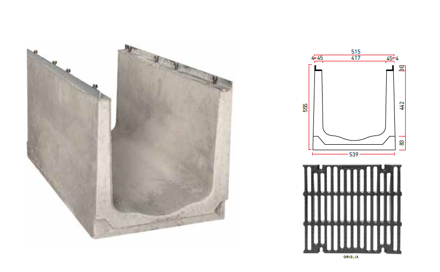 Betonska kanaleta z jeklenim pocinkanim robom.
