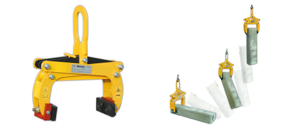 Model PZM-G predstavlja multifunkcijske klešče za dvigovanje raznih betonskih izdelkov. Opremljeno z vrtljivimi gumijastimi ploščami.