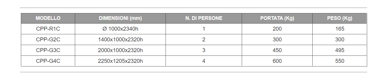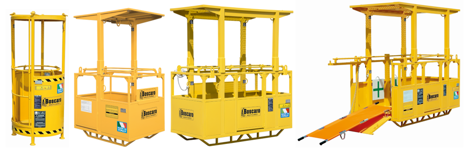 Ponujamo široko paleto dvižnih košar za 1, 2, 3, 4 osebe. So v skladu s standardi UNI EN. Dviganje s 4-stransko verigo, s stranskimi vrati za enostaven dostop, notranjim predalom za orodje, itd... Okrogla košara je na voljo tudi s kolesi.