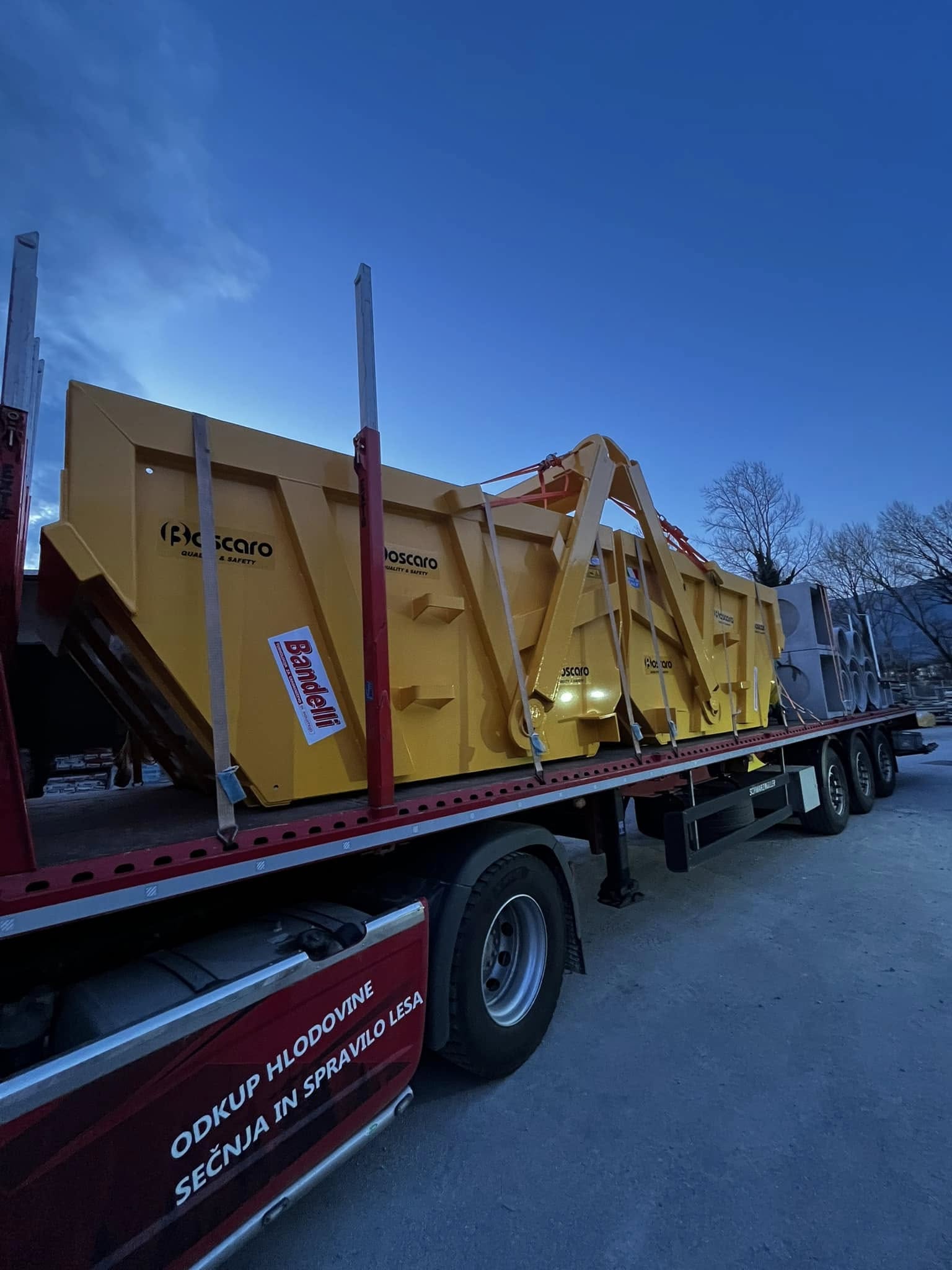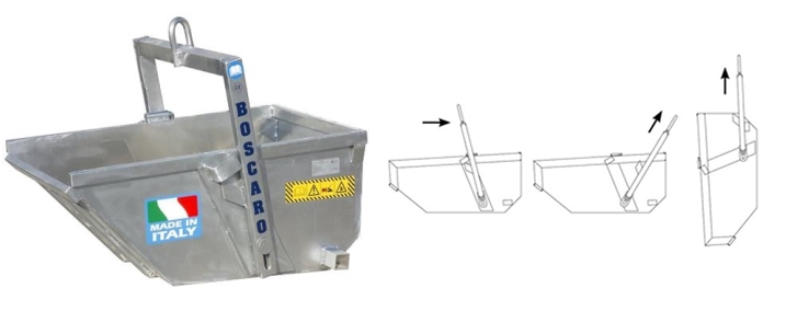 Posoda za material z avtomatskim kipanjem