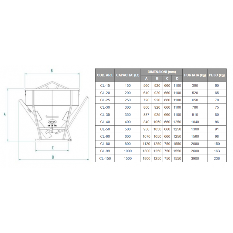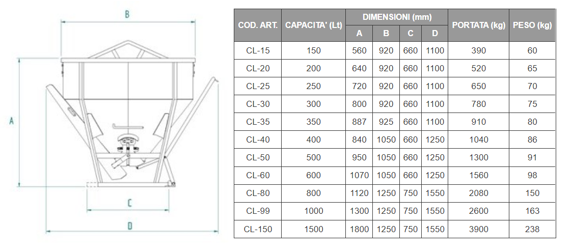 Opcije: Možno je zahtevati pocinkano izvedbo. Kot dodatno opcijo ponujamo tudi nosilec za prijem z viličarjem (modeli CL-ST).