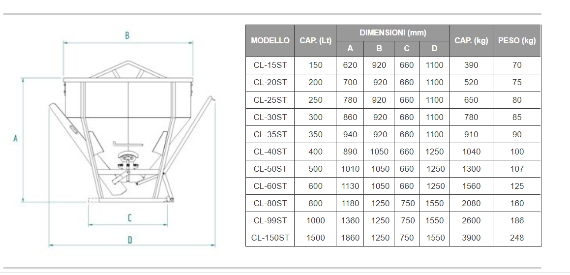 Kvalitetne posode za beton s centralnim in stranskim izpustom.