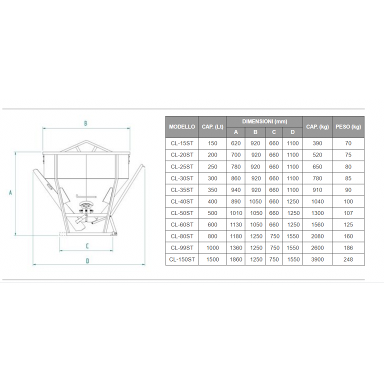 Ta model, tako kot model C, olajša postopek nakladanja z mešalnikom za tovornjake, zahvaljujoč nizki višini. Kipanje z ročico pa zagotavlja nadzor nad doziranjem, kar omogoča kakovostno in varno delo. Opremljena ja s stranskim izpustom, kateri zagotavlja natančnejše delo.