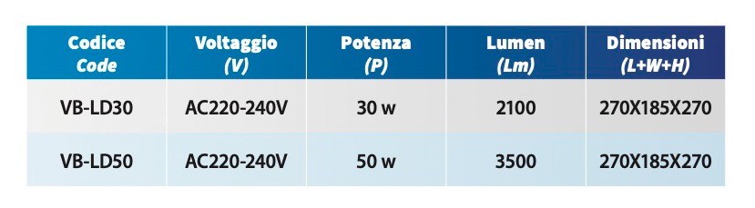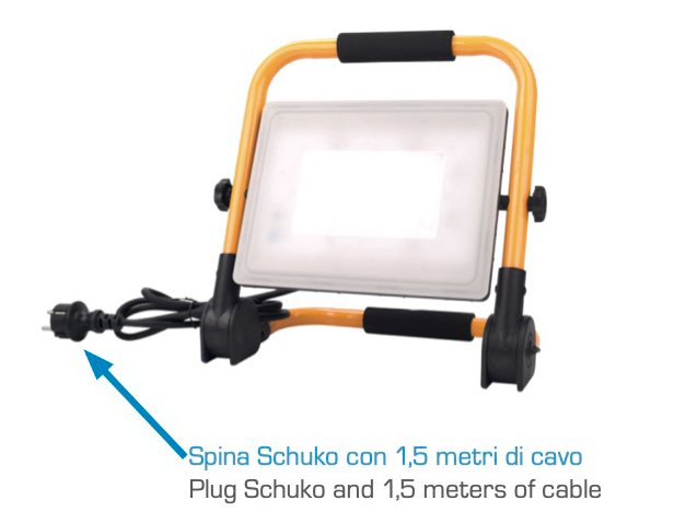 Profesionalni gradbiščni LED reflektorji. Visok sijaj luči, prašno barvani, ogrodje iz kovine, v kompletu z žarnico. Delujejo v temperaturnem območju od -20° do +50°C.