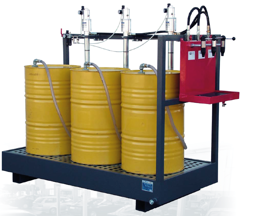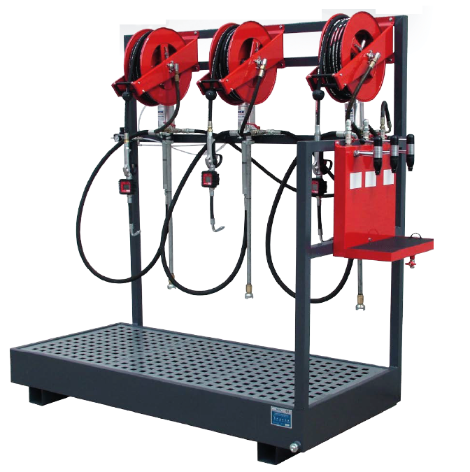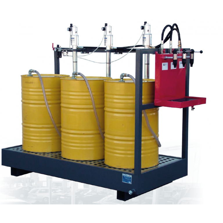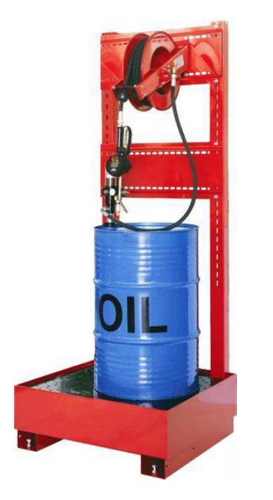 V kompletu s: Pnevmatsko črpalko, cevjo, bobnom za navijanje in lovilcem olja, regulatorjem pritiska, pištolo za olje s števcem.